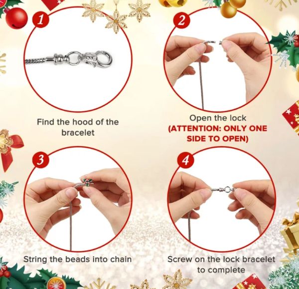 El calendario de adviento incluye 22 dijes y 2 pulseras para crear dos encantadoras pulseras.