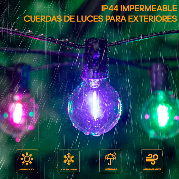 Fabricadas con materiales duraderos, estas luces están diseñadas para resistir diversas condiciones climáticas. Ya sea bajo la lluvia o el sol, tus luces seguirán brillando intensamente.