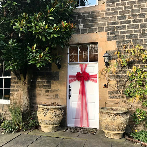 Decora tu puerta con nuestro lujoso lazo de decoración. Con un lazo de 750 cm de largo, puedes dar forma y añadir un bonito cambio de imagen festivo a tu puerta principal. Ya sea en Navidad, bodas o baby showers, el RUBYBOW realzará la ocasión.