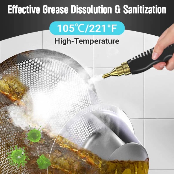 Ideal para limpiar campanas extractoras, ollas de cocina, refrigeradores, unidades de aire acondicionado, coches, baños, cocinas y más, con una presión de vapor alta de 3BAR.