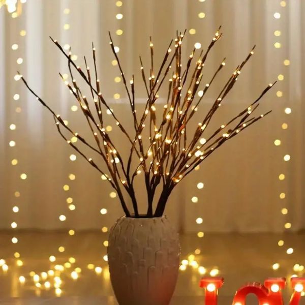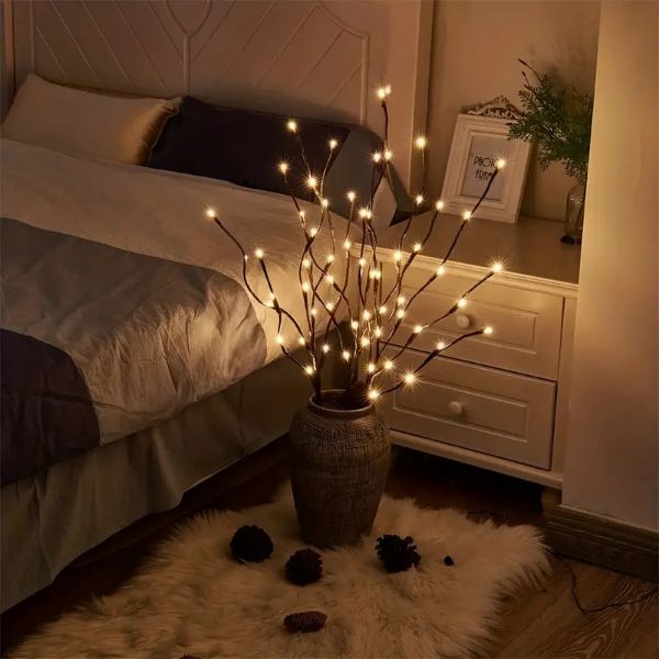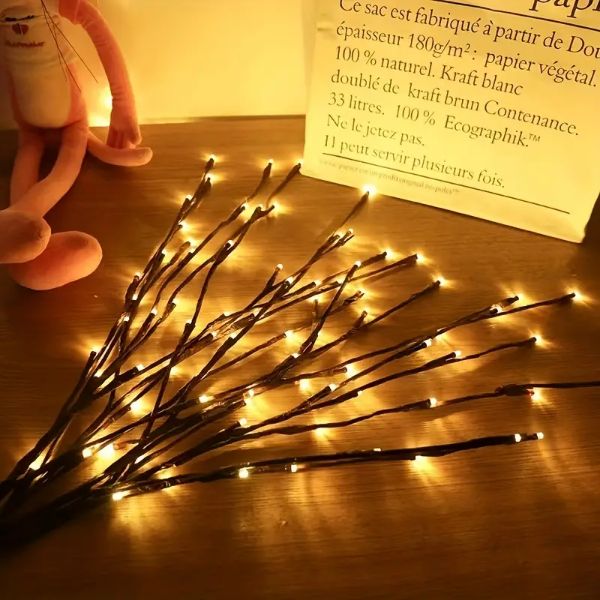 Un conjunto de luces de ramas LED incluye tres ramas, cada una con 20 luces LED, sumando un total de 60 pequeños portalámparas que proporcionan una iluminación abundante para crear un ambiente cálido y acogedor.