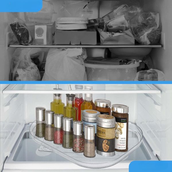¿Cansado de tener una nevera desordenada? SPINTRAY mantiene tu frigorífico organizado y libre de desorden, permitiéndote encontrar lo que necesitas sin tener que rebuscar entre montones de comida. Al girar 360°, hace que todo esté al alcance de la mano, ahorrándote tiempo y frustraciones.