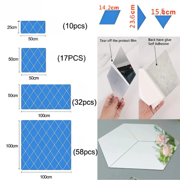 Pegatinas de pared efecto espejo (32 uds.) | WALLGEM