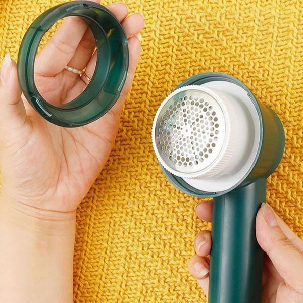 Cuando el quitapelusas esté lleno hasta las tres cuartas partes, vacíalo retirando las tapas y eliminando las fibras sueltas.